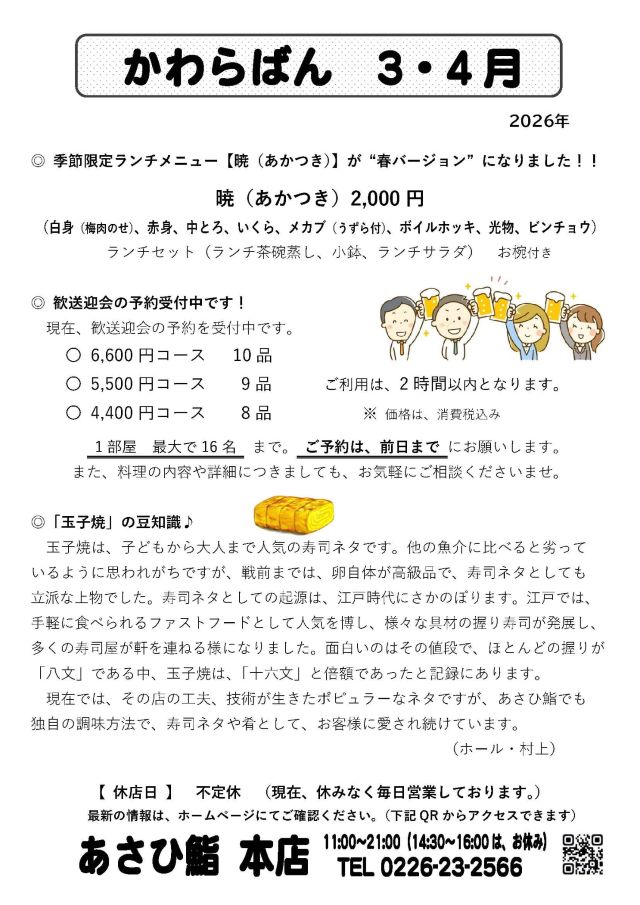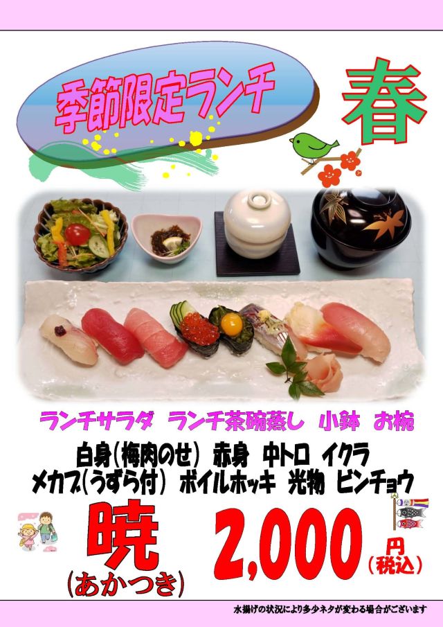 ・3/2(月)より、 季節限定ランチメニュー【暁(あかつき)】が、春バージョンに変更になっています。