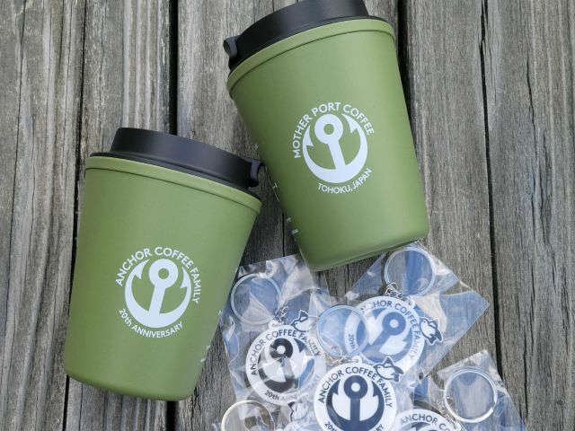 20周年アニバーサリーブレンドの販売(豆のみ・100g税込1,300円)、オリジナルタンブラー(税込1,680円)やキーホルダー(税込770円)を販売中。