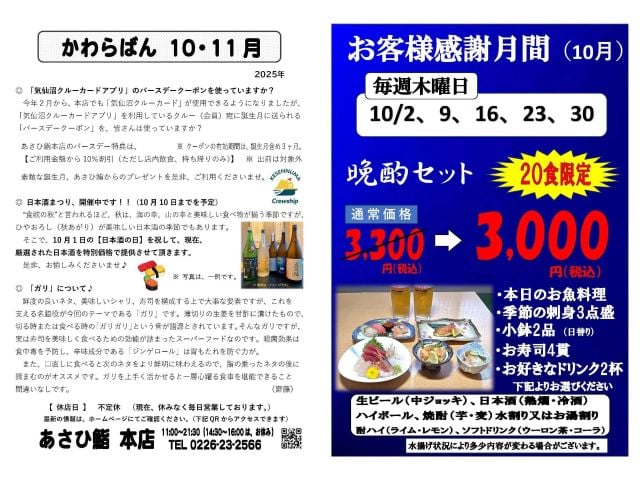 ぜひ「気仙沼あさひ鮨本店」でバースデークーポンをご利用ください!