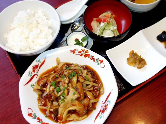 柔らかなフカ肉団子が入ったあんかけご飯。野菜もたっぷりでランチに嬉しいメニュー。