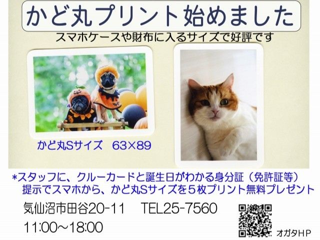 【誕生月クルー特典】かど丸プリントSサイズ5枚無料